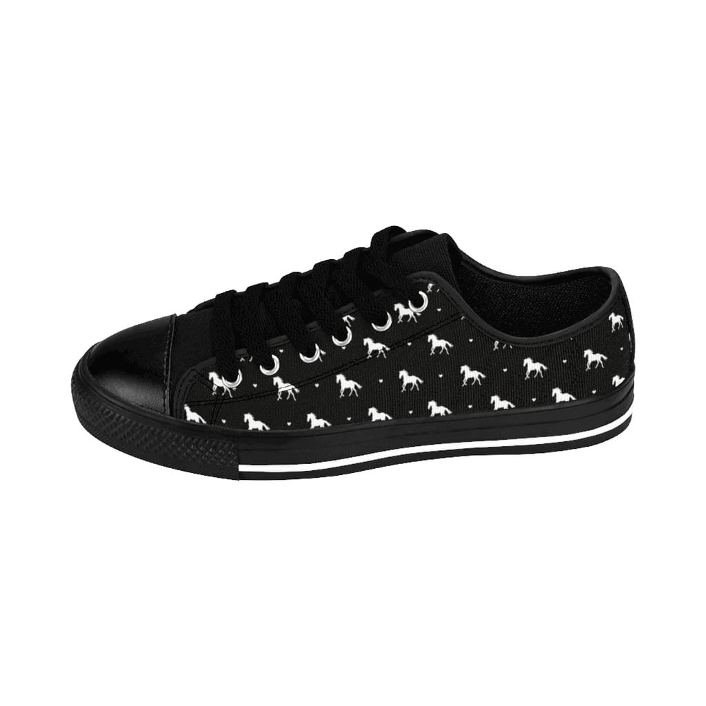 Who would’ve thought you could wear your love of horses on your feet (other than by wearing top boots everywhere)? These super comfy canvas sneakers feature the highest quality print, with these ones in my original “Plenty of Ponies” repeat pattern design, these ones are in classic black and white. Just don’t wear them to a muddy paddock, whatever you do!